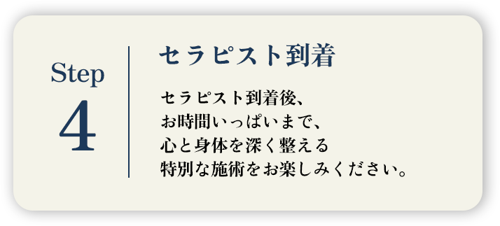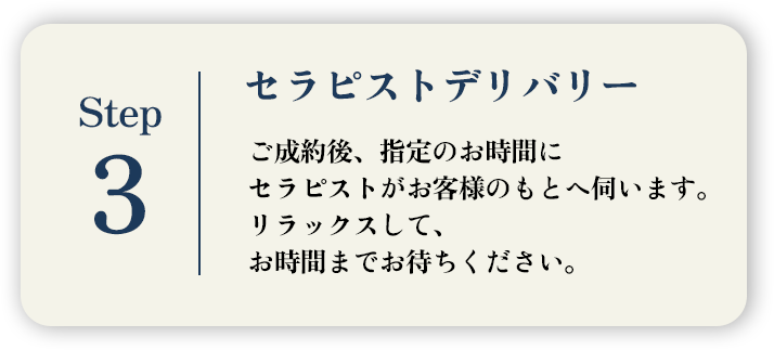 ホテルへお約束の時間にセラピストが
